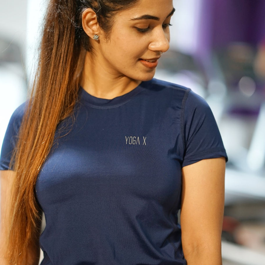Women Deep Navy Blue Half Sleeve Active T-shirt